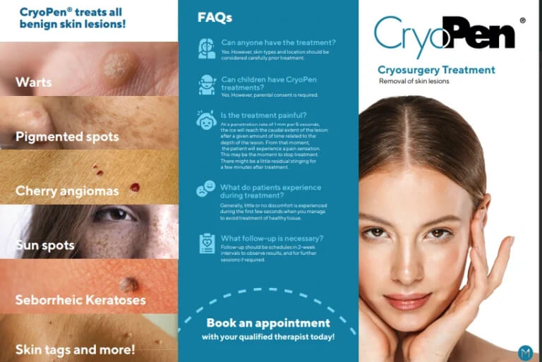 Q: What is the treatment?A: Cryopen treatment works by freezing and destroying growths on the skin through application of a high pressure jet of ultra-cold nitrous oxide. Your body’s own healing process then ‘clears’ the treated cells.